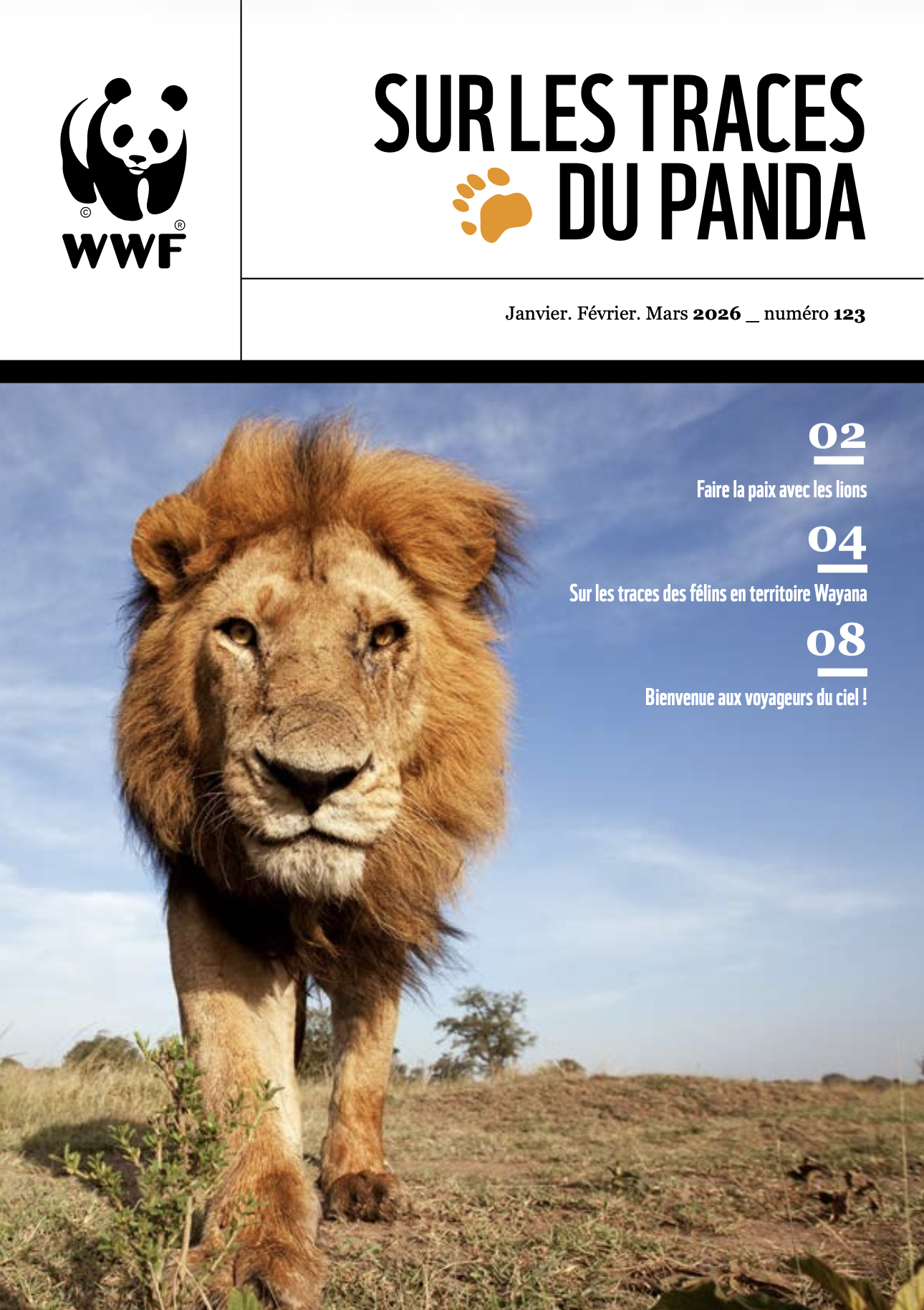 Chaque trimestre, retrouvez en ligne Sur les traces du Panda, le journal des donateurs du WWF France accessible pour toutes et tous ici. Au menu, les sujets qui font l'actualité, un focus sur les bonnes pratiques, le témoignage exclusif de personnalités engagées. Mais aussi des brèves, des conseils pour agir, des chiffres et des citations qui nous ont interpellés. Nous n’allions quand même pas les garder pour nous…